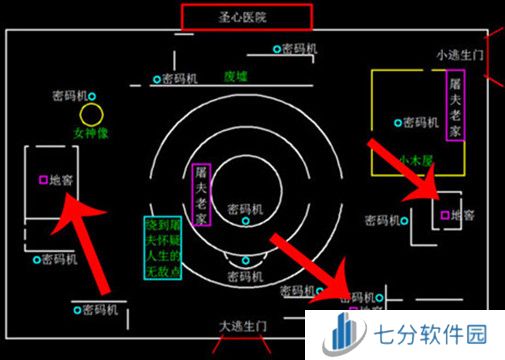1、医院后门地窖:位于医院后门正对的废墟里。