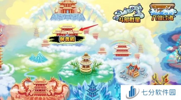首先需要玩家先打开游戏,在主页中找到中间的朝会殿。