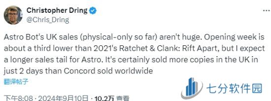 然而,外媒仅提到了《宇宙机器人》在英国的实体版本销售情况,全球市场的表现还有待进一步确认。“该游戏在英国仅两天的销售就超过了《星鸣特攻》在全球的总销量。”他在报告中这样写道。
