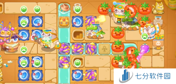 2、清除周边道具后,在右侧补充多颗满级番茄,增强火力。
