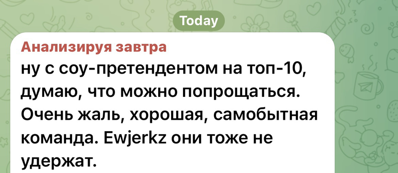 “我想我们可以和Top10的争夺者说再见了。很遗憾,这是一支优秀的全葡萄牙队伍,否则他们也不会留下ewjerkz。”