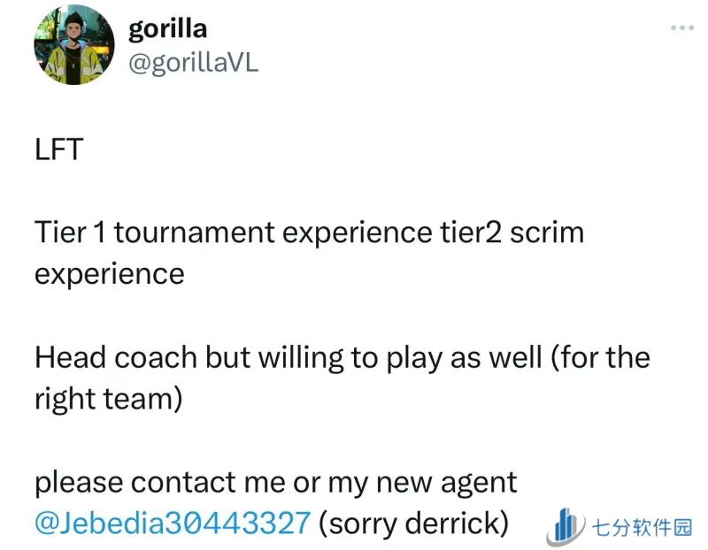 与此同时,gorilla也发文求职,寻求主教练职位或者是作为选手重新登上赛场。