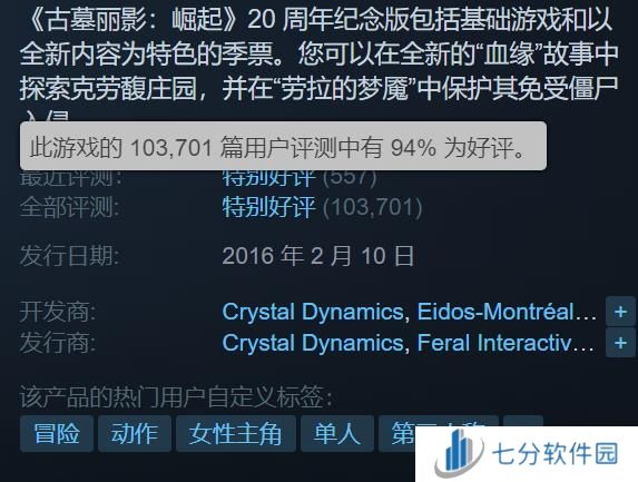 经典动作冒险游戏《古墓丽影:崛起(Rise of the Tomb Raider)》20周年纪念版于 Steam 平台推出 1.5 折新史低折扣,原价147元,现价仅需22.05元,优惠期限至10月25日。感兴趣的玩家现可前往入手。