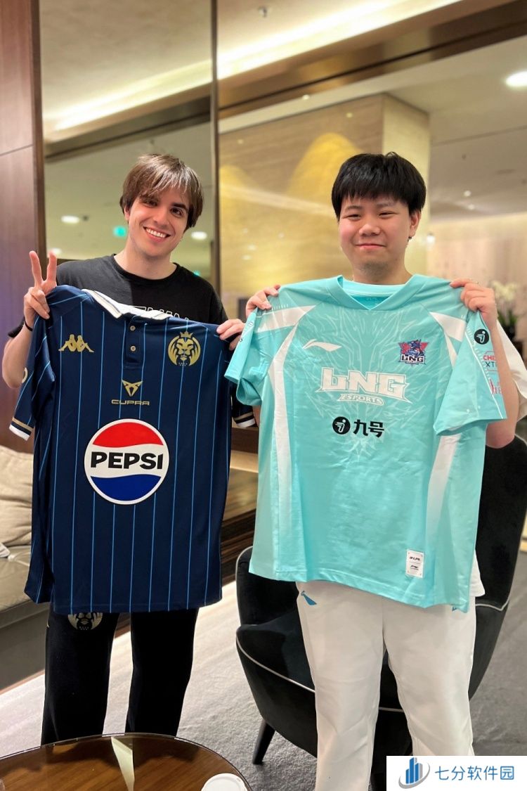 直播吧10月8日讯 LNG电子竞技俱乐部官博更新,发布Shad0w和Elyoya交换队服的照片,并配文:我们豆和老朋友MDK见面啦!MDK的大家表示很喜欢瓜的队服颜色。