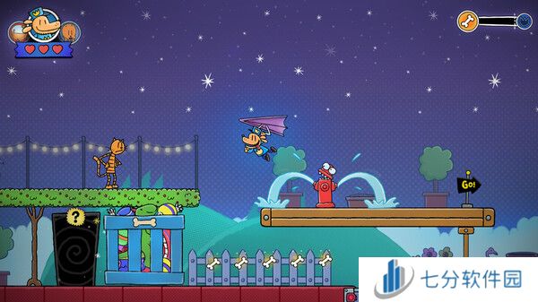 团队协作:在神探狗狗和他的超级伙伴之间切换,利用他们各自的特殊能力,克服障碍,战胜头目。