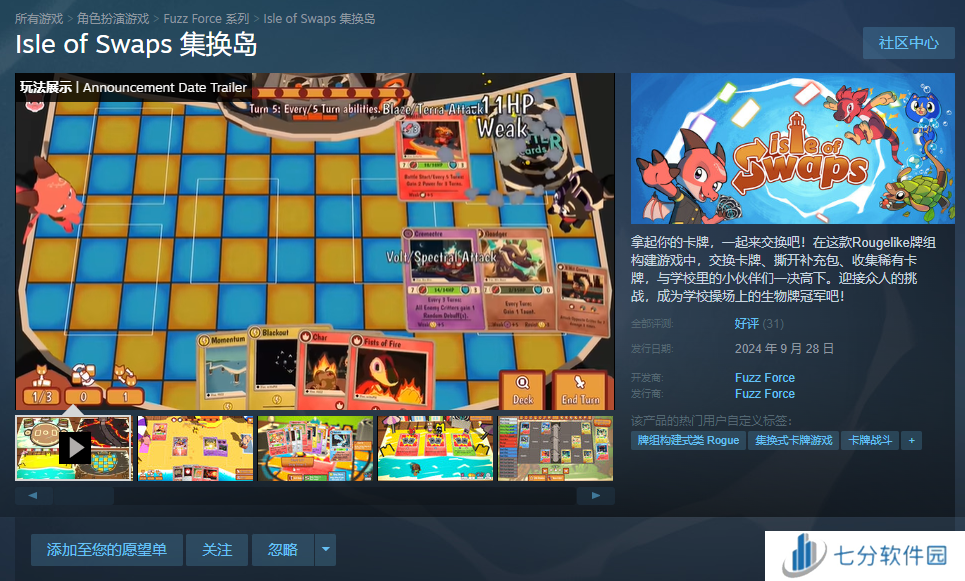 《集换岛》是Fuzz Force制作并发行的一款集换式卡牌游戏。而这款游戏想要下载还是比较麻烦的,下载的第一步就是安装Steam平台,然后注册账号登录,并且搜索《集换岛》,然后点击购买,之后点马上开玩即可。