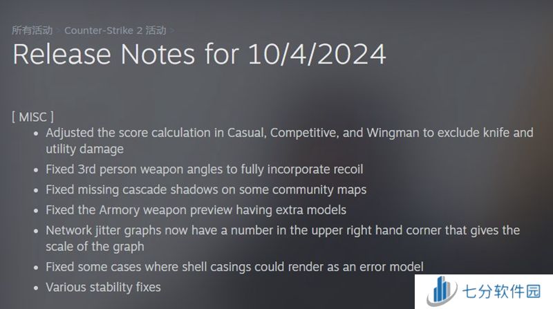 ·调整了休闲模式、竞技模式和搭档模式中的得分计算,以将刀和道具伤害排除在外