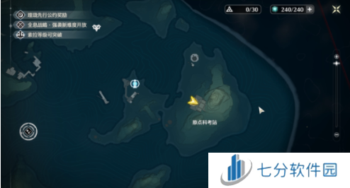 1、首先传送到到图中原点科考站的深境之塔位置。