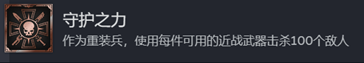 《战锤40K:星际战士2》中的特殊成就是非常多的,守护之力就是其中一个,而这个成就的完成要求就是作为重装兵,使用每件可用的近战武器击杀100个敌人,就是链锯剑,能量剑,动力拳。