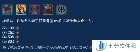 如果能升9人口,阵容开出2命运羁绊,命运选择器给予赫卡里姆,不仅能增加悟空10%攻击力,最关键的是还能减伤加成,进一步提升了悟空生存能力。