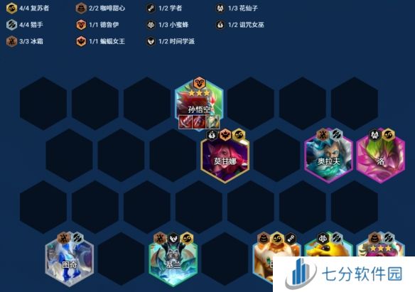 悟空3星后升8人口,补出2术士(卡西奥佩娅)+2学者(瑞兹,装备少的局可上米利欧)羁绊,能开4复苏最优。