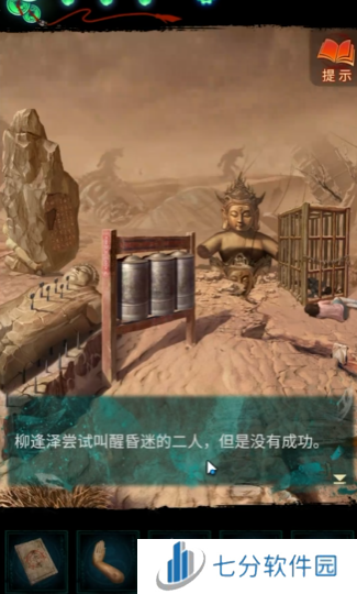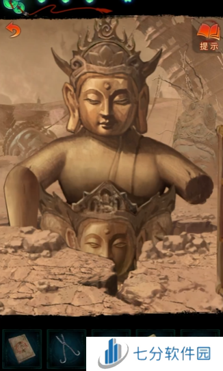 4、点击右侧睡倒的佛像,将佛像尖刺调整到图中位置,得到珠子、雕像断臂。