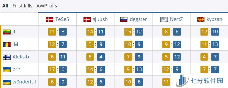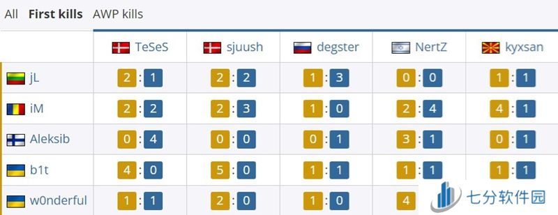 首杀对位上b1t一共为队伍拿到了12个首杀,相比之下HEROIC最多的是TeSeS,为队伍拿到8个首杀。