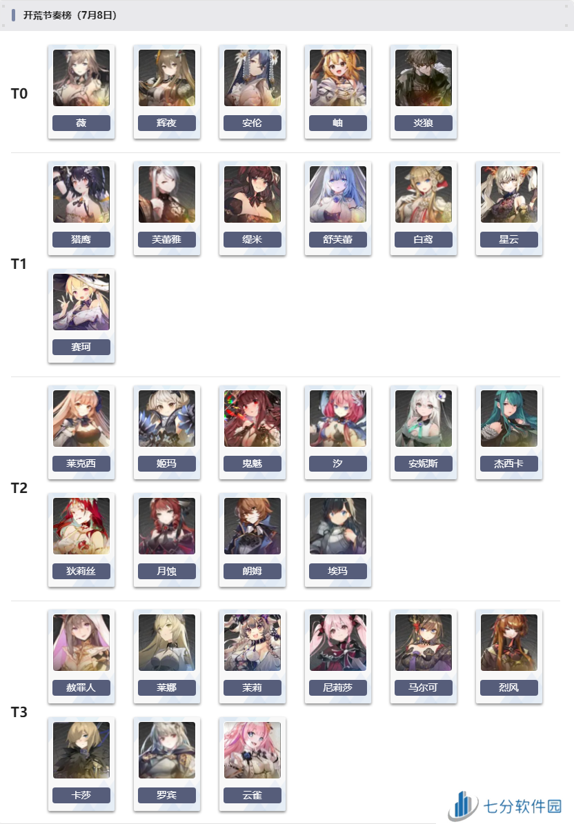 T0:最推荐养成的角色,拥有各职业中顶级的实力。