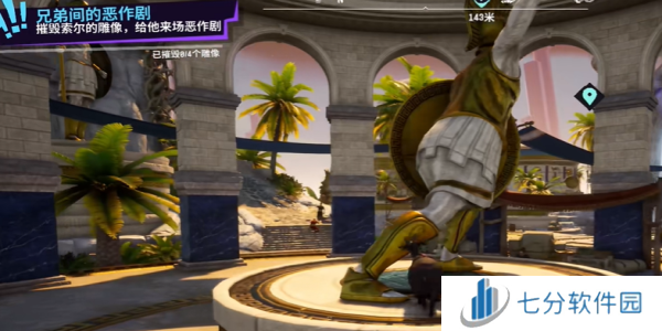 2、抵达目的地后,可在前方看到一个雕像,需要将这个雕像摧毁。