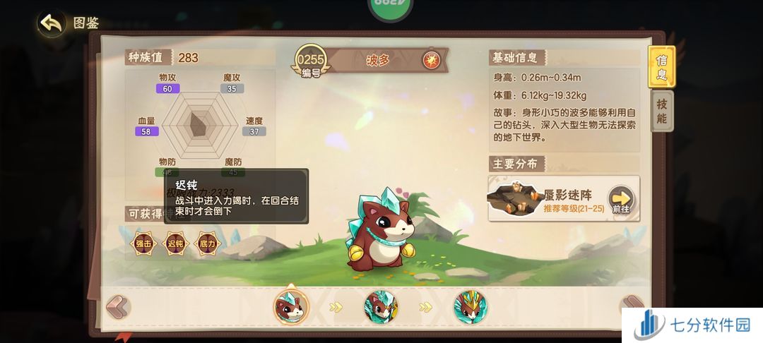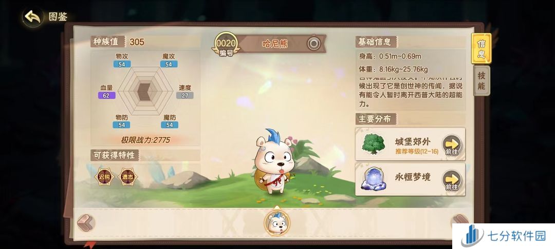 别看它小小只的就低估了人家,哈尼熊的特性遗志,可以在倒下后,将自身的属性强化全部附加给下一位上场的精灵,极强的辅助属性让哈尼熊成为挑战BOSS时的不二选择。