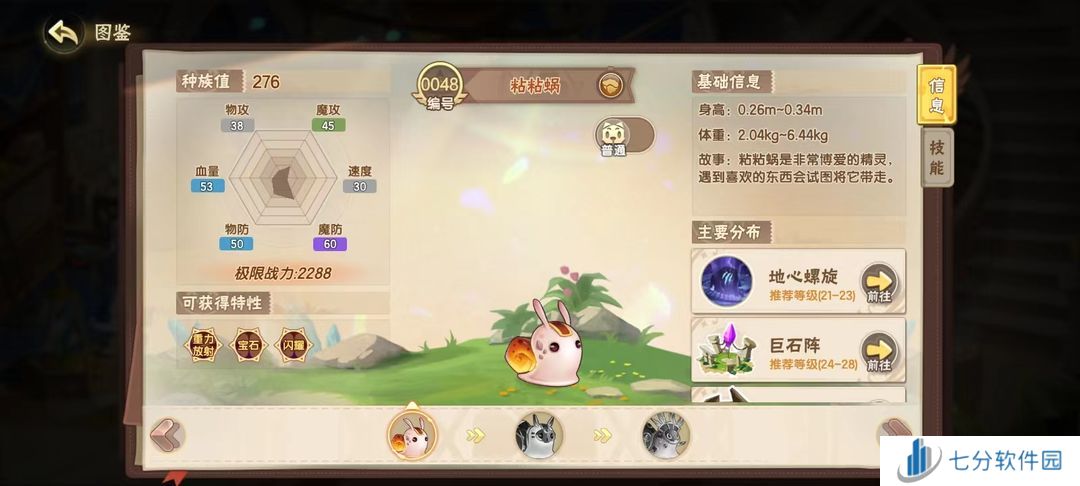 精灵速度慢总是被对方先手打败?让粘粘蜗来帮你~特性重力放射,重力场内速度慢的精灵才能先手攻击,战斗不再慢人一步,助力小西普们的最后一击!