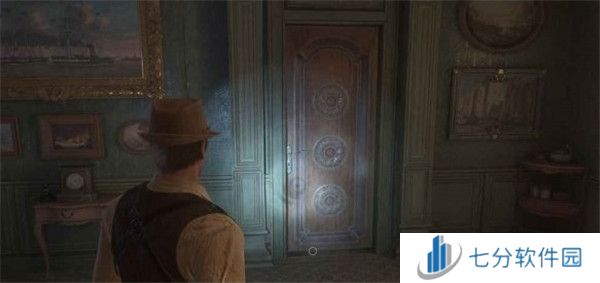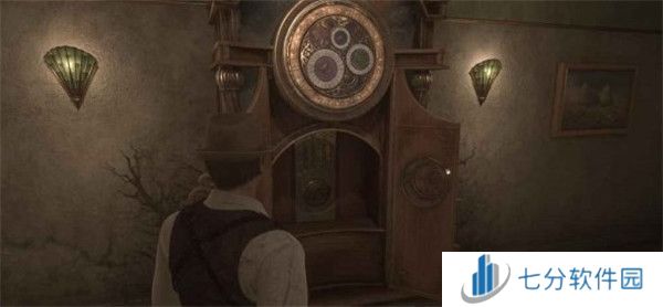 前往画廊,在钟表右侧的门上使用起居室钥匙。
