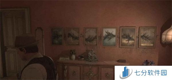 进入佩洛西的房间后,从沙发上拿起佩洛西的日记,获得谜题的提示。走进墙上挂着的画,翻开从左到右数第2幅、第3幅和第6幅画,名字应该是威廉·阿吉斯(William Arges)、弗兰克林·莫西格(Franklyn Mosig)和诺拉·基斯(Norah Keith)。来到佩洛西床边的画前,对照名字可以获得他们头上的数字,分别是2-9-4。
