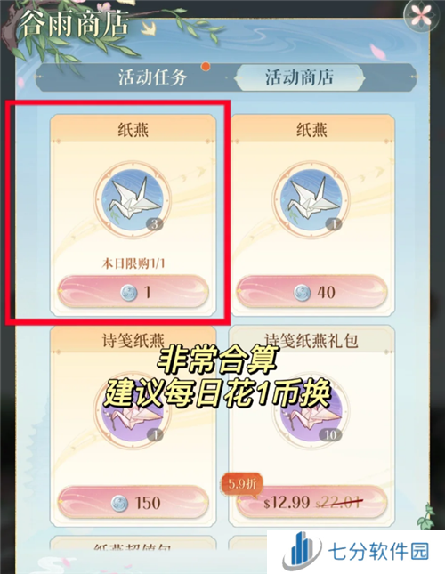 在普通纸燕充足的情况下,花150白币购买特殊纸燕,比天机符直购200币和家具盲盒直购180白币合算,尤其战力党推荐用诗笺纸燕换天机符,要下池子抽密探的话转到天机符用150真的很划算,强烈推荐!