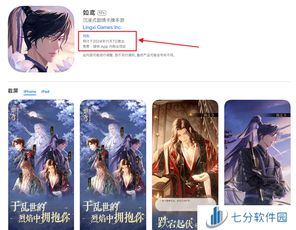 iOS的App Store上现可看到《如鸢》预计于2024年11月7日推出,大概率是和安卓同步上线,玩家可以期待一下。