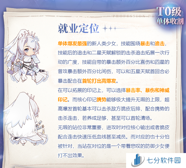 冒险小分队无瑕是单体爆发最强的新人类少女,技能围绕暴击和追击,技能后的追击和二星天赋解锁的击杀追击拓展一次行动的广度,技能自带的暴击额外百分比直伤和四星的普攻暴击额外百分比间伤,可以和五星天赋首回合必暴击配合在首轮打出高爆发。下面为大家详细说明一下无瑕阵容有哪些。