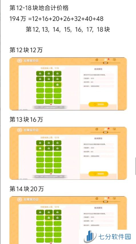 心动小镇今日新增的第12-18块地价格分别是多少?12+16+20+26+32+40+48万依次从第12块地开始算起来,加起来七块地总共购买价格为195万,一起来看看具体的心动小镇12-18块地价格明细吧。