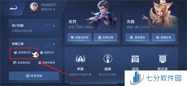 3、然后点击下图中的快捷工具,接着点击亲密度补发选项