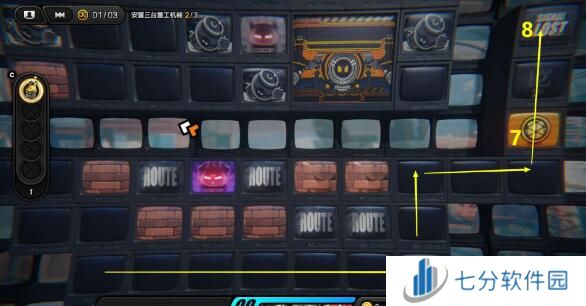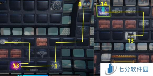 6、8区域上下左右4个控制机关,可以控制9机械移动,将9机械按照下图路线,依次拿了10和11区域的奖励后,进入12区域即可
