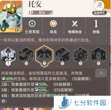 前排坦克之星——托安:独享复活神技,分摊伤害加吸血,既坚韧又输出,前排首选,战斗续航无敌。