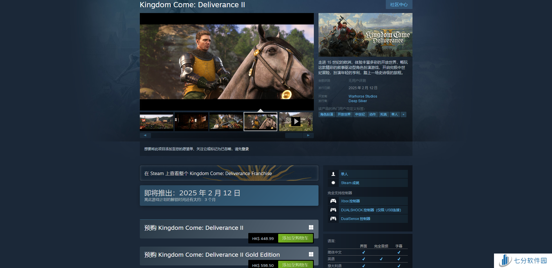 Steam平台购买链接:https://store.steampowered.com/app/1771300/Kingdom_Come_Deliverance_II/。