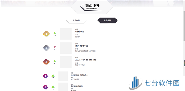 官网上分为不同的板块,比如可以查看【歌曲排行】,包括付费歌曲和免费歌曲;