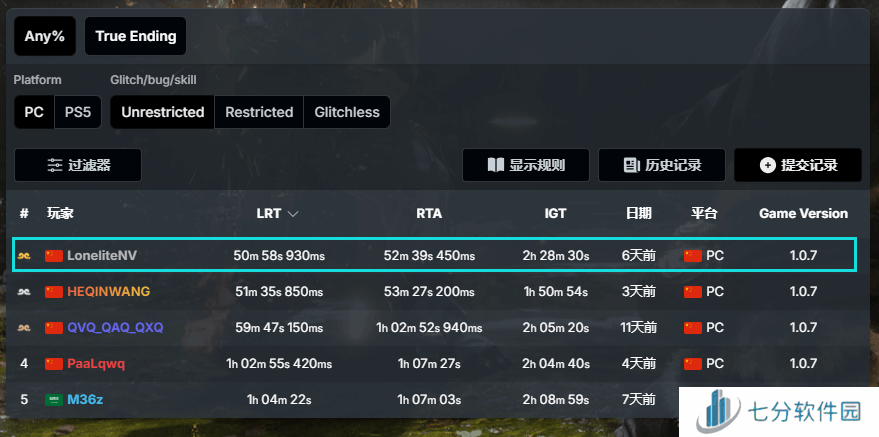 此外,SpeedRun速通社群网站也迅速更新了排行榜,LonEliteNV的最新成绩被列为榜单首位,巩固了他在速通界的地位。